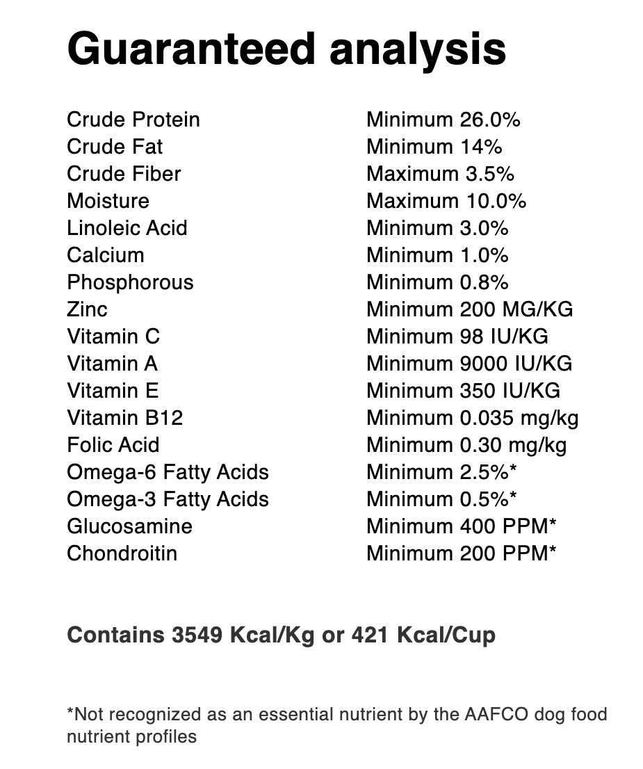 High percentage of available calories for canine athletes — nutrient dense